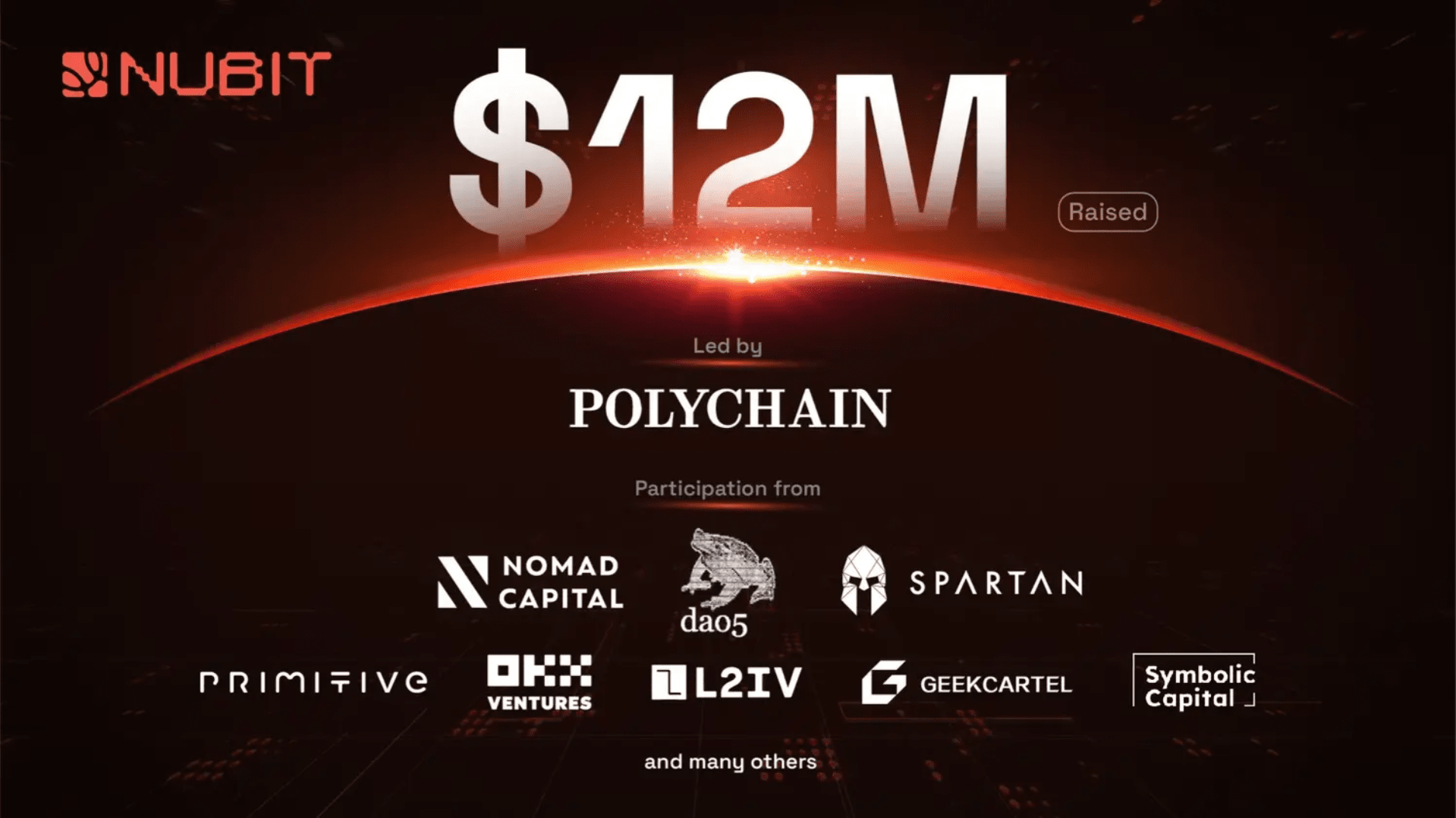 Nubit ha completato un finanziamento totale di 12 milioni di dollari, guidato da Polychain Capital, con altri investitori tra cui Nomad Capital, Spartan Group, L2IV, Big Brain Holdings, GCR, Protagonist, Gate Ventures, Animoca e Mask Network.