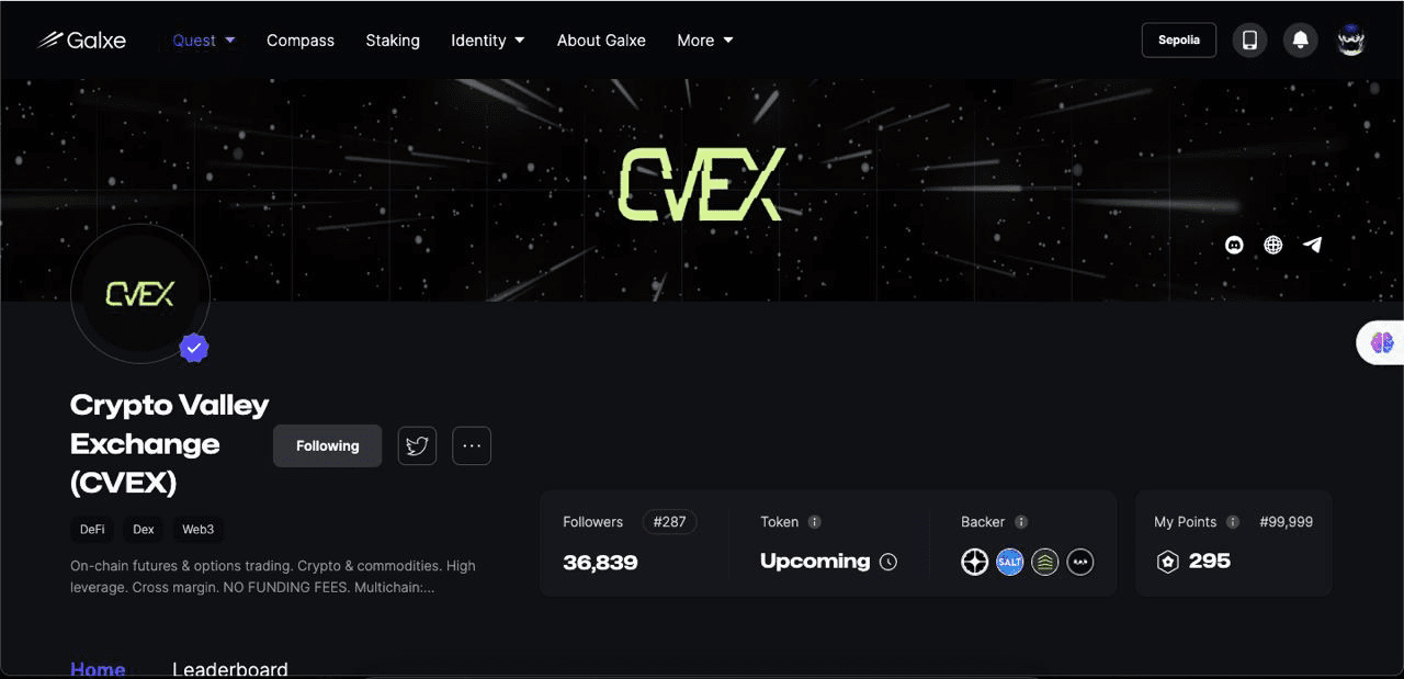🔄 Vai a visitare: https://app.galxe.com/quest/CVEX/GCrE3tdXht?referral_code=GRFr2Jxveym7WbTuJt4J7OD3Bo8NHohWlXwG7E6kfI9w-jO