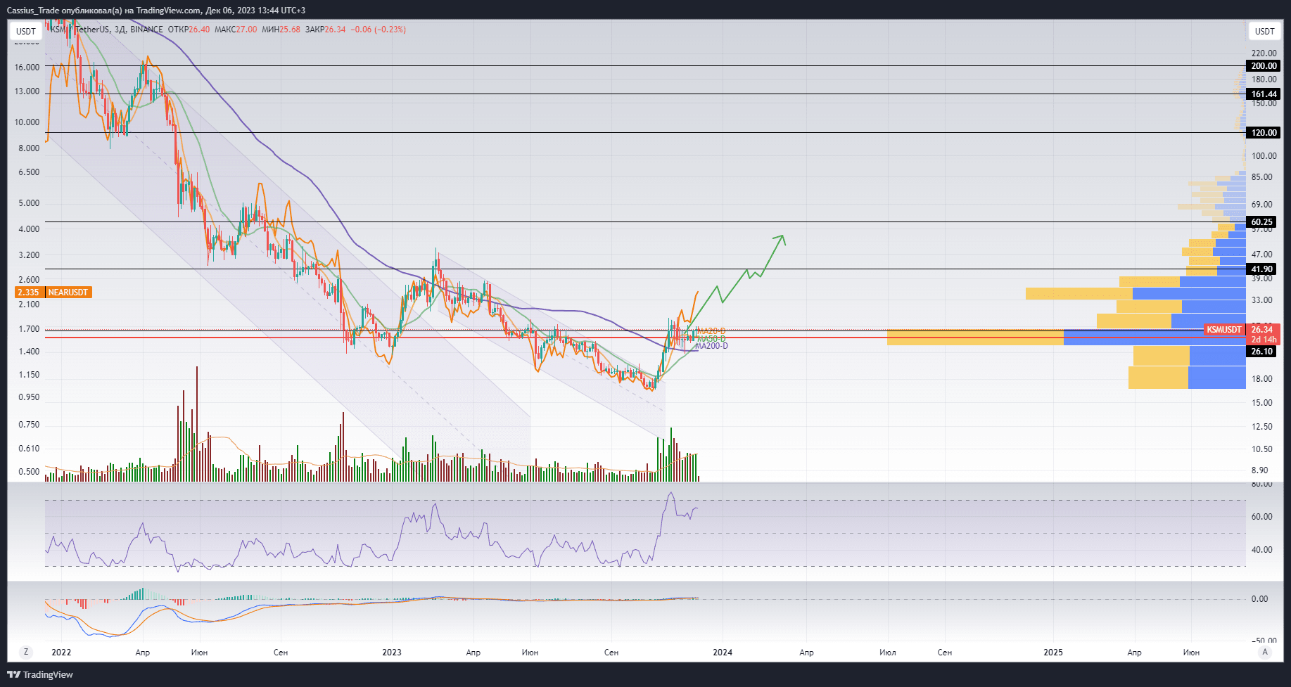 Na wykresie na początku wpisu nałożyliśmy wykres monet KSM na wykres monet NEAR (linia pomarańczowa).