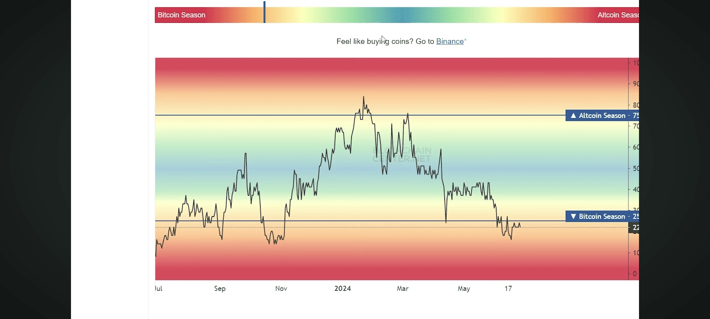 Sytuację można powiązać z tym, że w cyklach BTC, gdy pomiędzy BTC a Altami występują pewne rozbieżności, te ostatnie nadrabiają zaległości, poniższy wykres pokazuje nam moment, w którym BTC traci dominację, a altcoiny oferują lepsze zyski. Kiedy dotrzesz do górnej części kanału, musisz obrócić się do pozycji stabilnej.