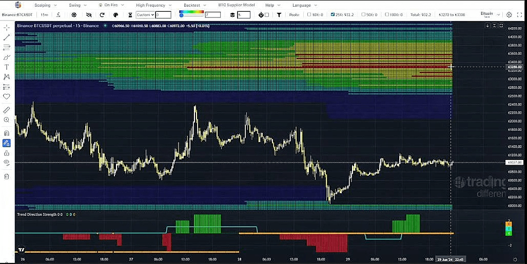 Następnie likwidują pozycje długie, aby kupić BTC po 57 tys., po czym następuje absorpcja i osoby, które mają pozycje krótkie od 71 tys., zamykają swoje pozycje, co powoduje stosunkowo szybki wzrost ceny, aby powrócić do przedziału 61,5–63 tys.