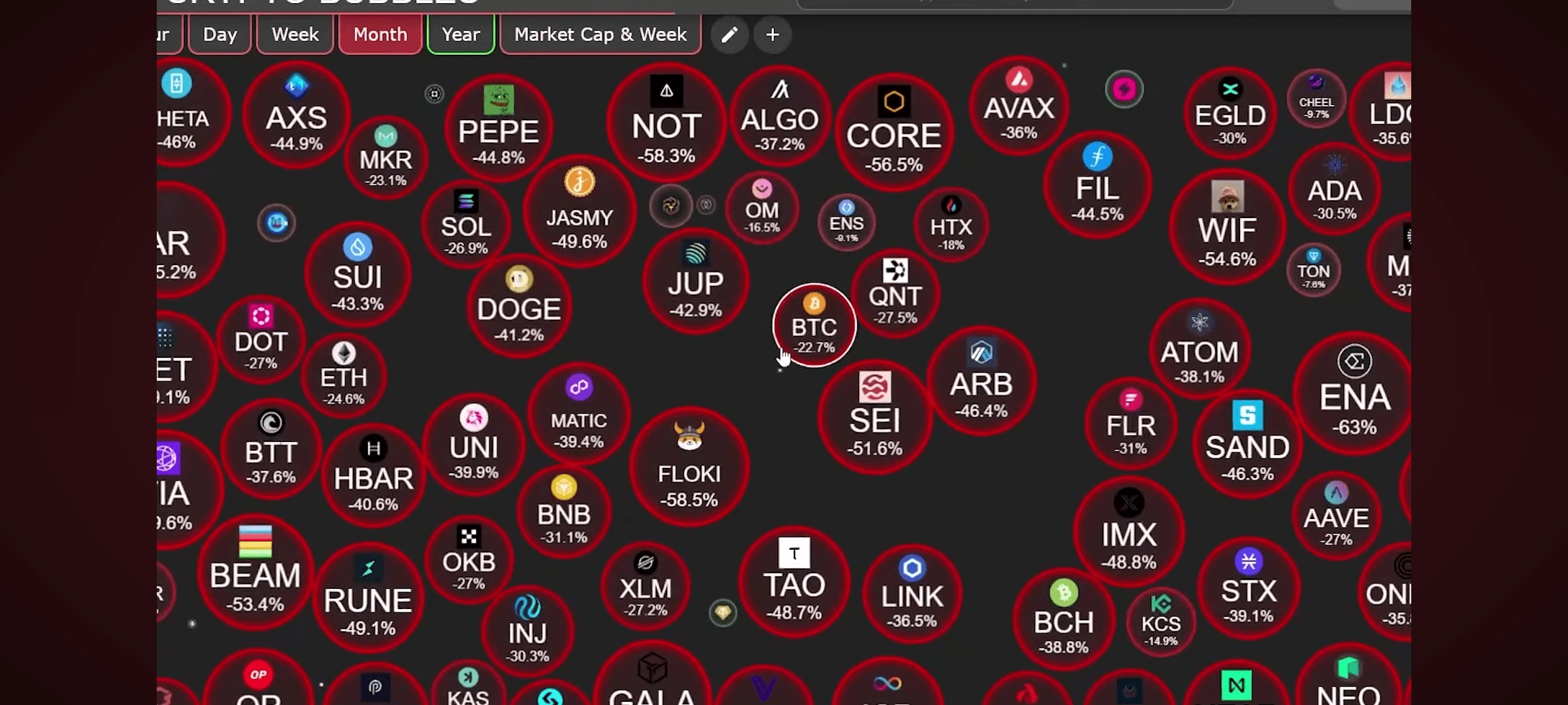 100% sektora znajduje się w RED, tylko BTC spadł w tym miesiącu o ponad 20%.