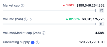 Obecna kapitalizacja podaży w obiegu wynosi około 189 miliardów dolarów.