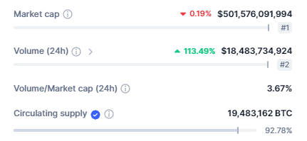 Obecna kapitalizacja podaży w obiegu wynosi około 502 miliardów dolarów.
