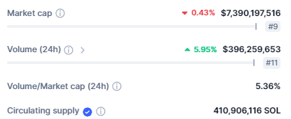 Obecna kapitalizacja podaży w obiegu wynosi około 7,4 miliarda dolarów.