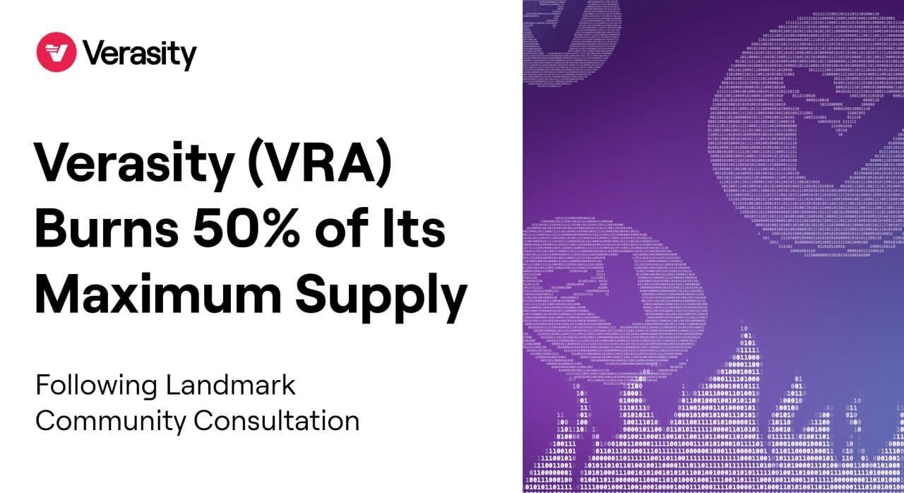 Verasity, symbol giełdowy $VRA, spalił dziś 50% swojej maksymalnej podaży po jednej z największych konsultacji społecznych w historii kryptowalut – z dalszymi planami przeniesienia 90 miliardów tokenów, obecnie zarezerwowanych do obiegu danych, do nowego blockchainu.