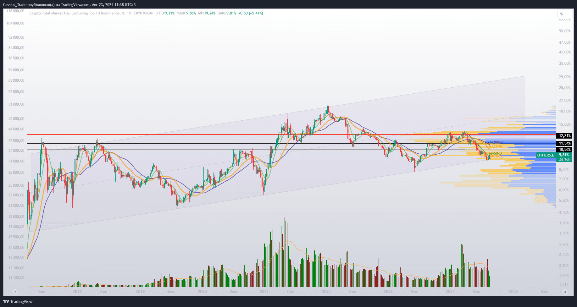 3️⃣Dominacja altów pomyślnie zaczęła odbijać się od dolnej granicy długoterminowego kanału wzrostowego. Oznacza to, że w średnim terminie alty są w początkowej fazie wzrostu.