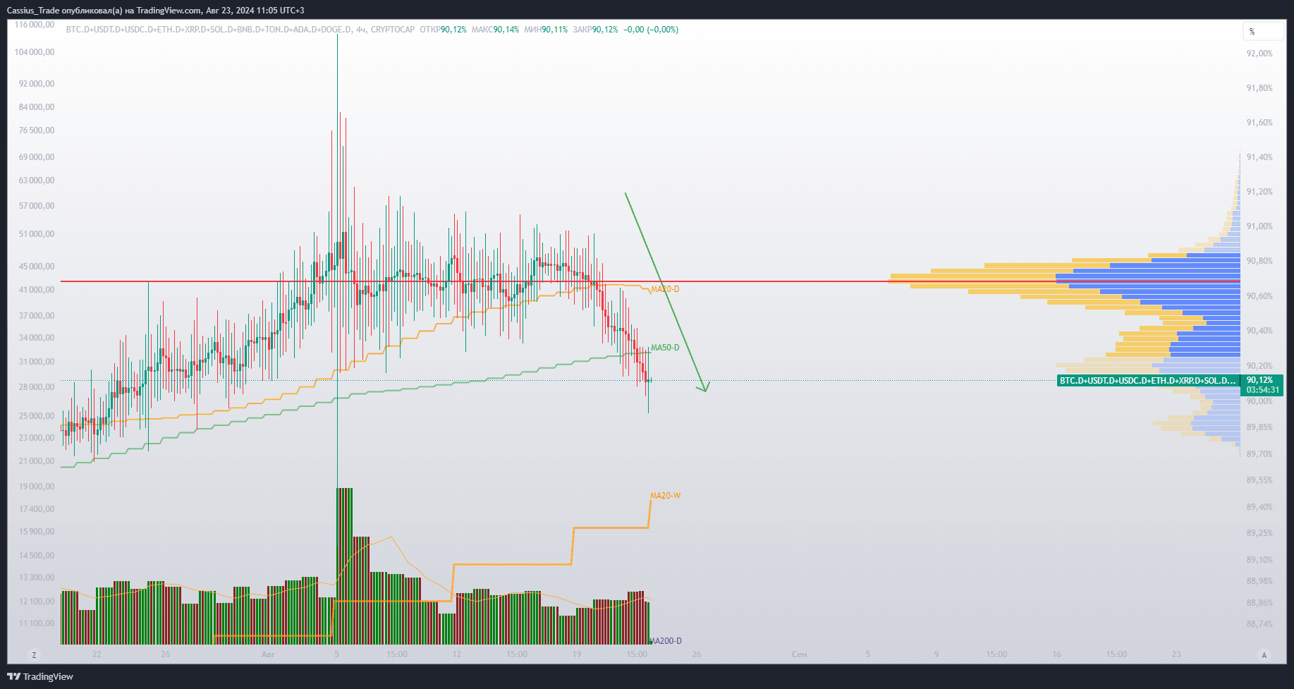 2️⃣ Dominacja TOP 10 monet pod względem kapitalizacji, biorąc pod uwagę monety typu stablecoin, zaczęła spadać. Wskazuje to na ten sam przepływ płynności do altów.