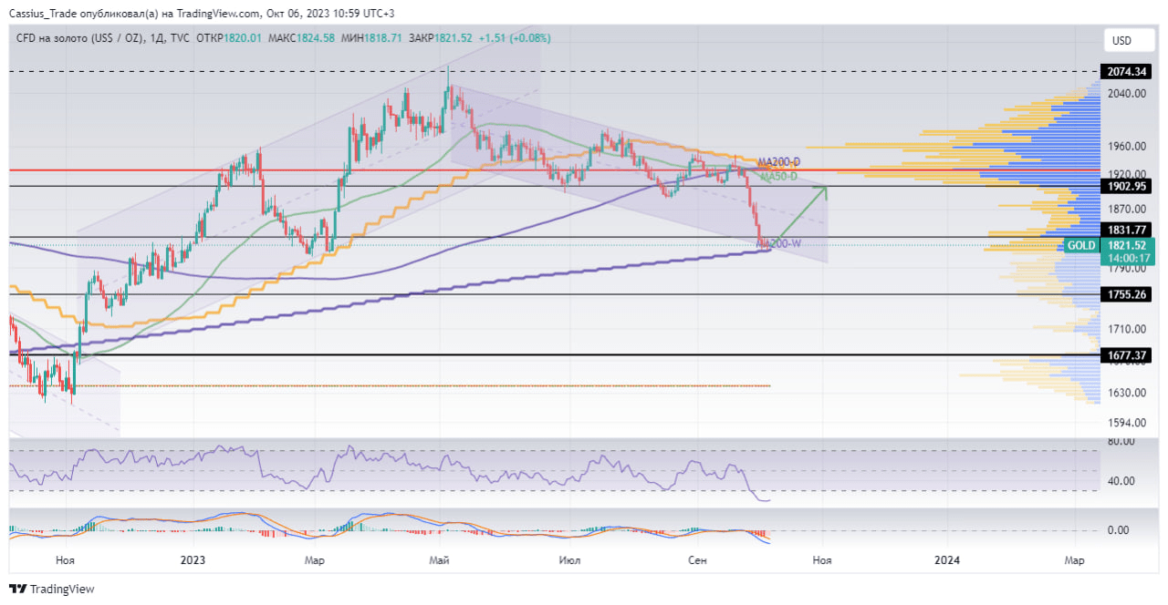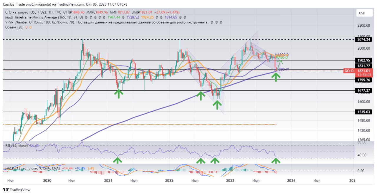 Według wskaźników w ujęciu tygodniowym złoto weszło w strefę wyprzedania. Historycznie od takich poziomów aktywo to odbiło w górę.