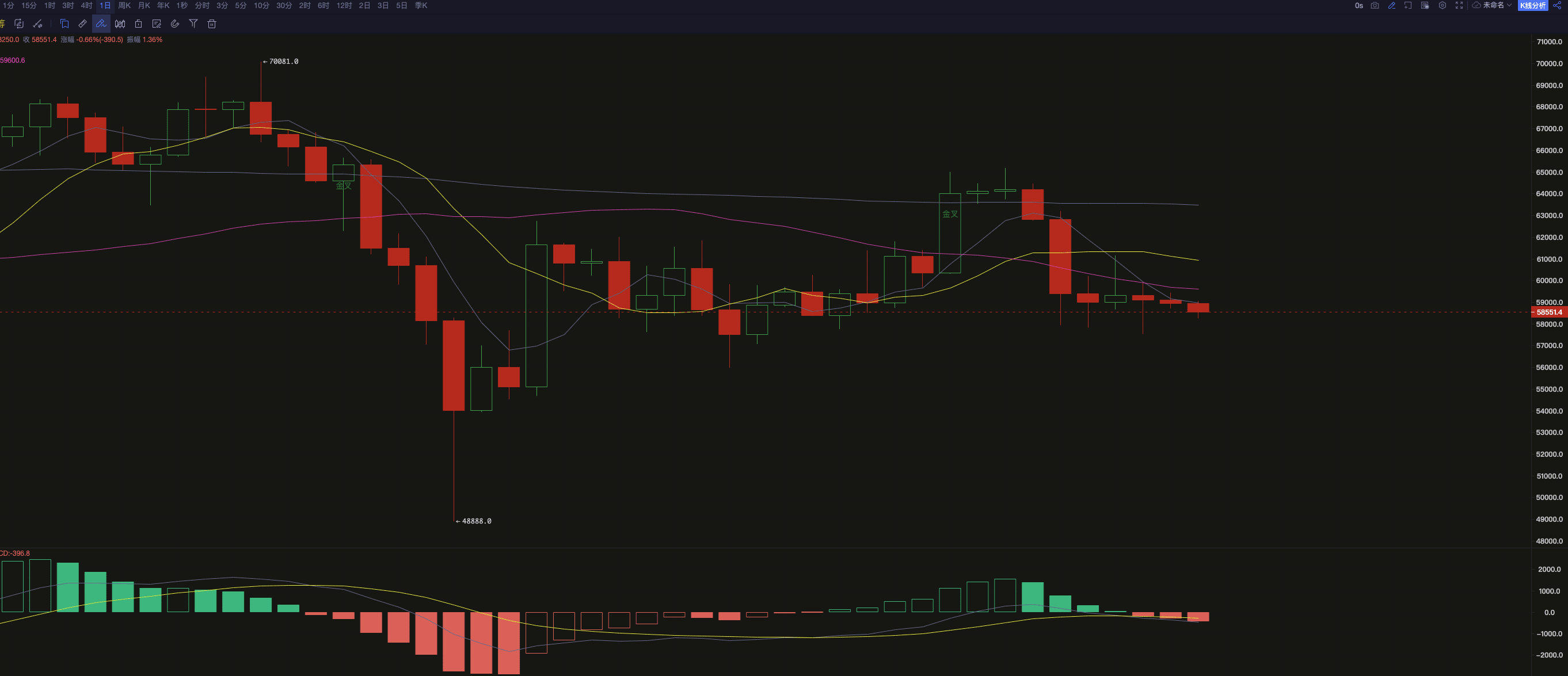 Obecna cena Bitcoina wynosi 58 557 USD, a w krótkim okresie cena może wahać się w przedziale 58 000-60 000 USD. Inwestorom zaleca się zachowanie ostrożności i zwrócenie uwagi na wsparcie w wysokości 58 000 dolarów. Jeśli cena spadnie poniżej poziomu wsparcia wynoszącego 58 000 USD, zaleca się redukcję pozycji i poczekanie na okazję, aż cena spadnie do 57 000 USD lub poniżej. Jeśli BTC odbije i przebije 59 000 dolarów, można spróbować krótkoterminowych operacji z lekką pozycją i zwrócić uwagę na poziom presji 60 000 dolarów.