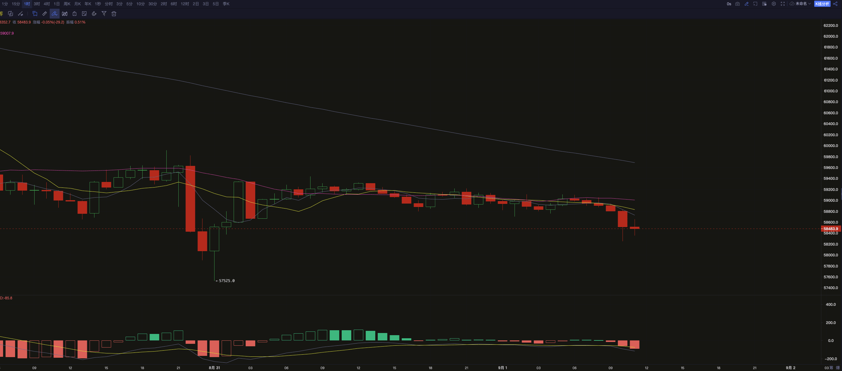 Od 1 września cena Bitcoina (BTC) wynosiła 58 557 dolarów. Wykres dzienny pokazuje, że po gwałtownym spadku BTC konsoliduje się obecnie w przedziale od 58 000 do 60 000 dolarów. Ostatni trend linii K jest słaby, a naprzemienne czerwone i zielone linie K małych podmiotów pokazują, że siły długich i krótkich stron na rynku są stosunkowo zrównoważone, ale presja spadkowa nadal istnieje.