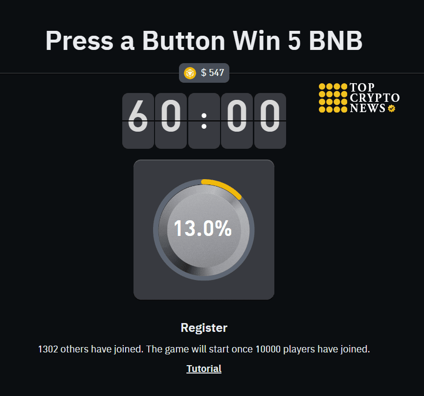 Okres aktywności przypada na okres od 18 września, godz. 00:00 (UTC) do 27 września, godz. 12:59 (UTC). Przez cały ten czas możesz dołączyć do gry Binance Button Game i jako pierwszy odliczać do 00:00, aby mieć szansę na wygranie 5 BNB.