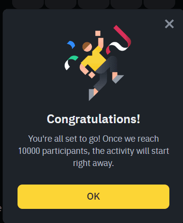 Po naciśnięciu przycisku rejestracji, gdy całkowita liczba uczestników osiągnie 10000, aktywność się rozpocznie.