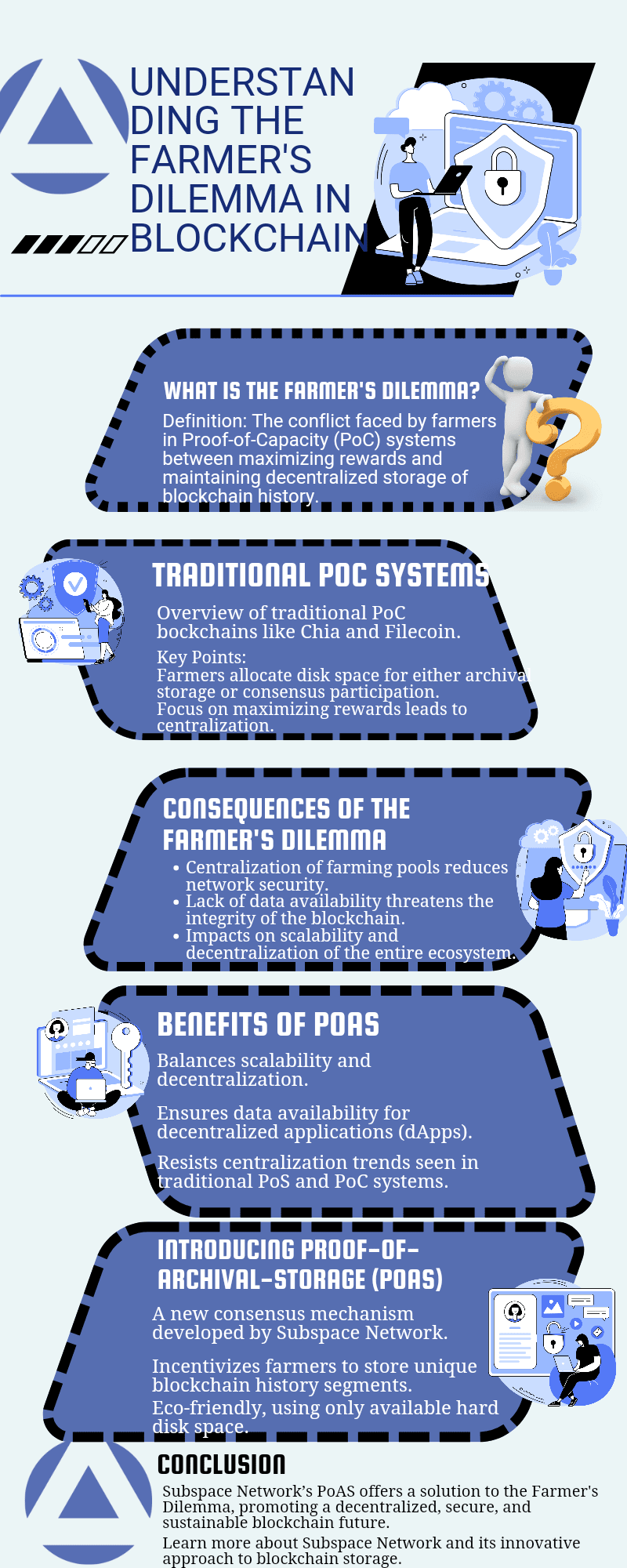 W dzisiejszej przestrzeni blockchain skalowalność, decentralizacja i efektywność energetyczna to trzy główne wyzwania. Subspace Network wprowadziło przełomowe rozwiązanie, które rozwiązuje te problemy za pomocą Proof-of-Archival-Storage (PoAS), mechanizmu konsensusu, który rozwiązuje krytyczny problem znany jako dylemat farmera.