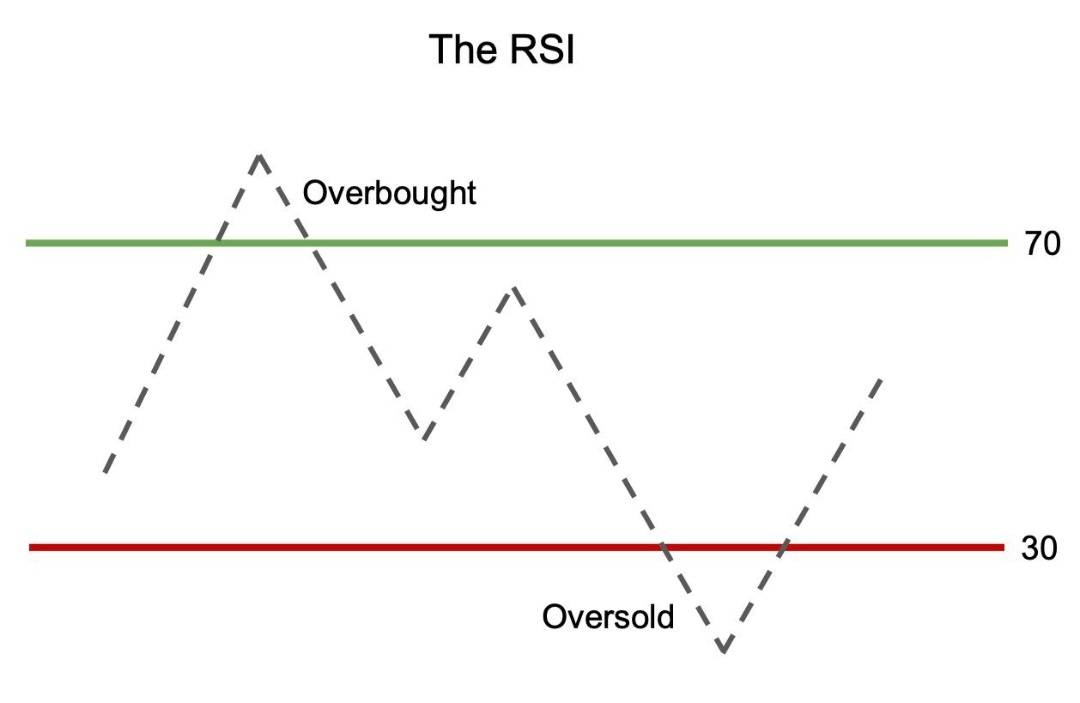 Wartość RSI będzie bliska 70, gdy cena będzie wykupiona i 30, gdy będzie wyprzedana.