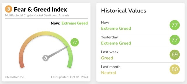 #GreedIndex #btcupdates2024 #btc73k #BTC100Ksoon #16thBTCWhitePaperAnniv