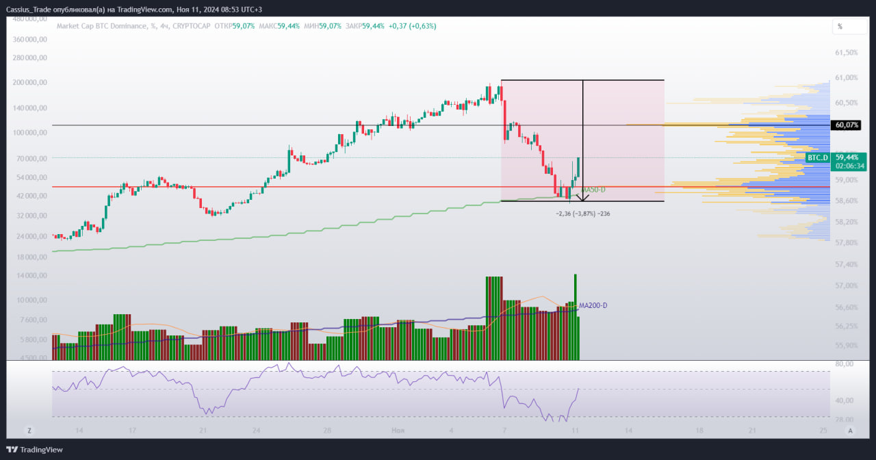 3️⃣ W ciągu weekendu dominacja Bitcoina spadła jedynie o -3,87%. Cała płynność bili białej trafiła do altów, które w ciągu kilku dni pokazały +30%!