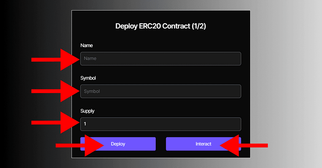 3. Teraz spersonalizuj swoją umowę, wprowadzając nazwę, symbol i dostawę.