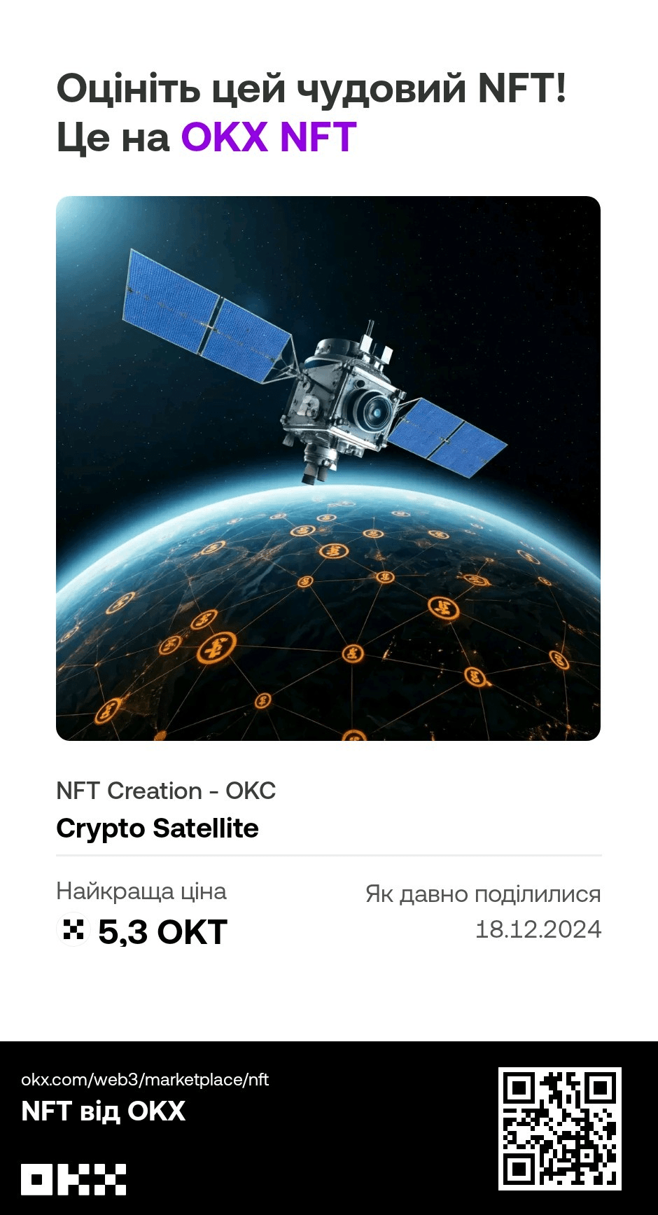 Crypto Satellite - obiecuje wybijać jeden token kolekcjonerski miesięcznie, ale w różnych przedziałach cenowych. Crypto Satellite powinien być jak Twój ulubiony magazyn, który co miesiąc oferuje przedmioty kolekcjonerskie, takie jak samochody! To tylko jeden oryginalny egzemplarz, który może mieć tylko jednego właściciela! Jednak z biegiem czasu ten przedmiot kolekcjonerski zyskuje na popularności, a także rośnie jego cena. Chodzi właśnie o token Crypto Satellite, ponieważ ten token jest wyjątkowy w tym sensie, że jest jedyny i nie ma sobie równych. 5.3 OKT to moim zdaniem 53$, to nie jest wygórowana cena. Ale to tylko jeden właściciel na jednostkę produktu! Obecnie Crypto Satellite ma tylko dwa tokeny, jeden z tokenów będzie teraz mój.