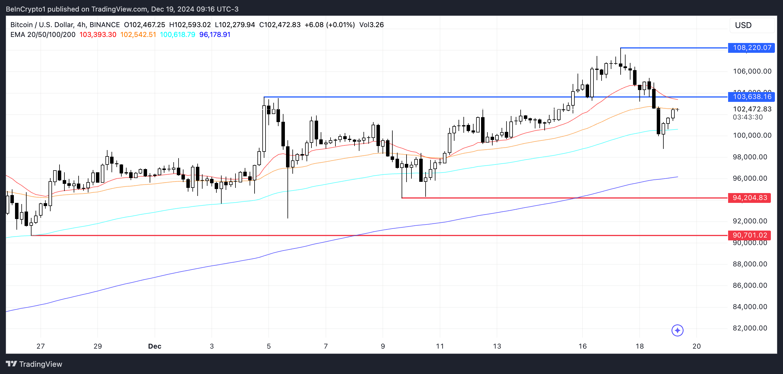 Jeśli cena Bitcoina zdoła przełamać opór na poziomie $103,638, może zdobyć wystarczający impet, aby przetestować nowe rekordowe poziomy wokół $108,000.
