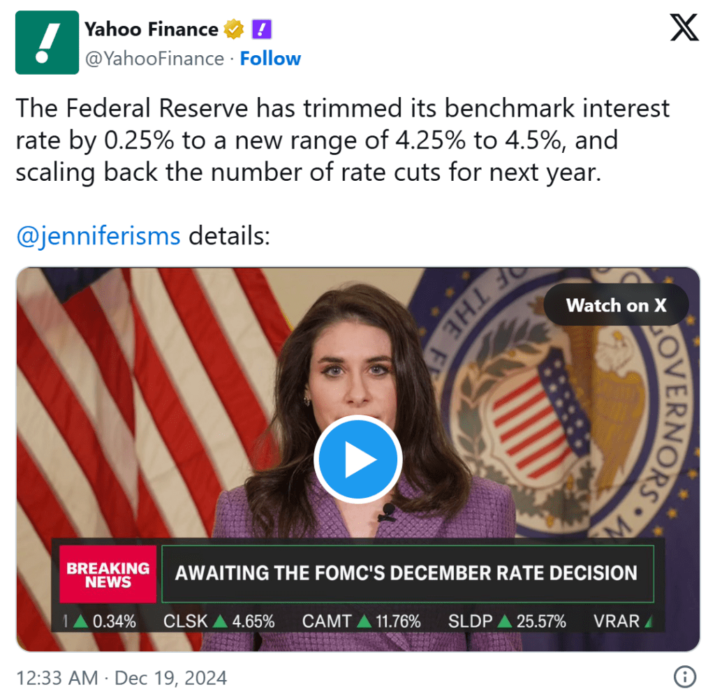 Ponadto Powell ujawnił, że w 2025 r. nastąpią tylko 2 obniżki stóp procentowych. Stwierdzenia te spowodowały niedźwiedzi wynik, który zaczął się od realizacji zysków, ale przerodził się w lawinę presji sprzedaży.