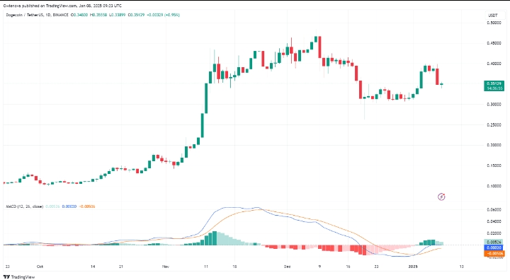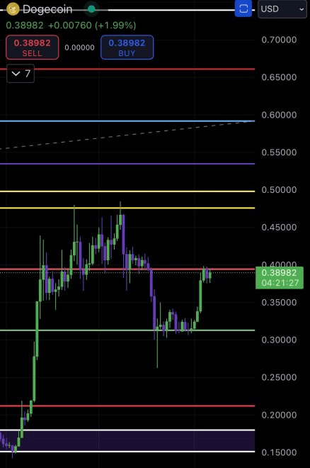 Eksperci kryptowalutowi, tacy jak Kevin, podkreślili walkę Dogecoina z kluczowymi poziomami Fibonacciego. ⚔️ Makro rozszerzenie Fibonacciego 0.5 działa jako znaczący opór, ale przełamanie tego może otworzyć drogę do złotej kieszeni DOGE przy $0.49.
