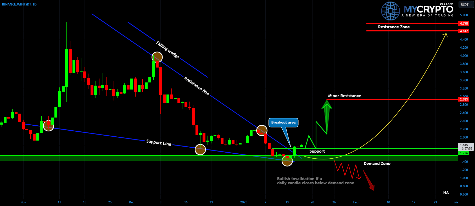 💎Jeśli cena utrzyma się powyżej tego kluczowego wsparcia, możemy być świadkami silnego ruchu w kierunku $2.93, poziomu drobnego oporu, który musi zostać pokonany, aby napędzić utrzymującą się byczą dynamikę. Czyste przebicie powyżej $2.942 otworzy drzwi dla WIF do celowania w jego główną strefę oporu między $4.63 a $4.80. Historycznie, ten poziom był znaczącym sufitem, ale jeśli zostanie przełamany, może wywołać eksplodującą hossę.