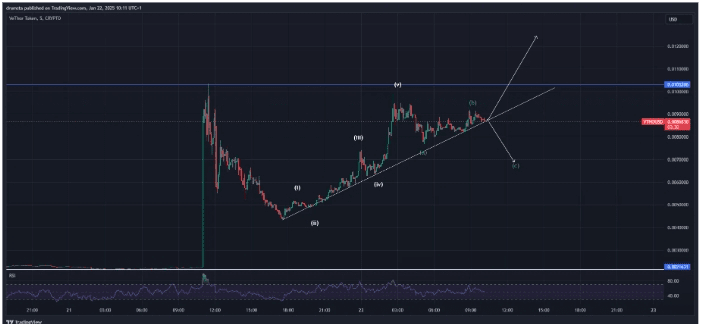VTHO wzrosło o ponad 300%, osiągając 21 stycznia 0,0101 USD po oscylowaniu wokół 0,0025 USD od grudnia. To wybicie przekroczyło spadkowy trend oporu, który istniał od maja 2022 r., oznaczając znaczące odwrócenie byka. Ruch ten wpisuje się w historyczną strefę wsparcia od 0,0021 do 0,0028 USD, która obecnie działa jako silna baza dla dalszych potencjalnych zysków.