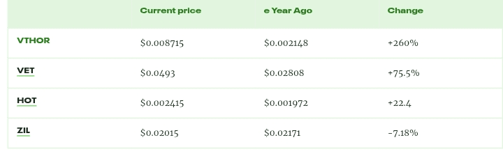 Token VeThor jest ściśle powiązany z VeChain, więc porównajmy wydajność VTHO z VET i innymi podobnymi kryptowalutami.