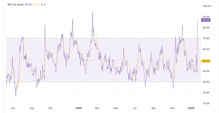 22 stycznia 2025 r. RSI tokena VeThor wynosił 86, co wskazuje na stan wykupienia.