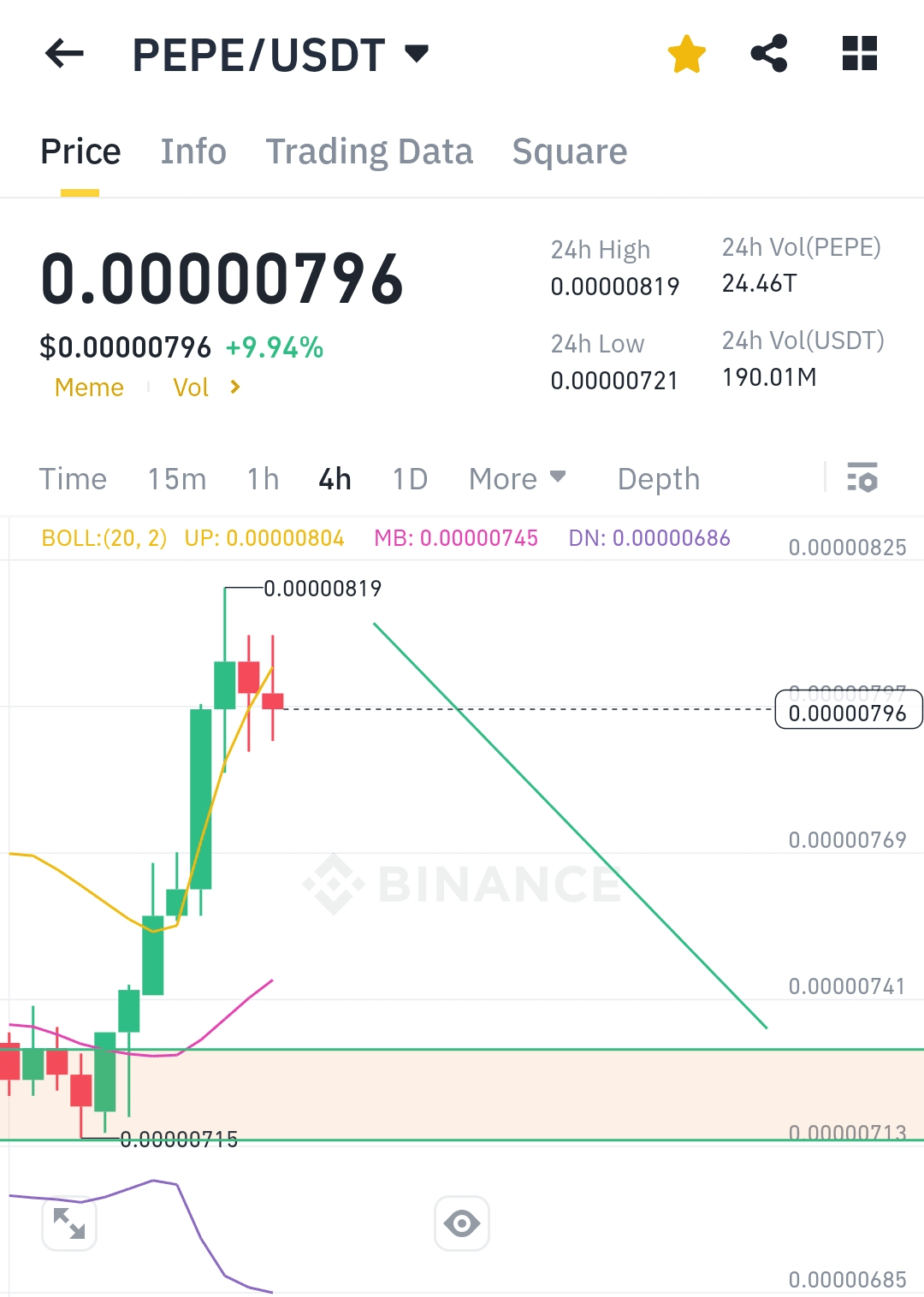 Potrzebna jest mała korekta w pepe, aby rozpocząć dużą hossę w kierunku 0.00000860, ale przed tym potrzebujemy strefy 0.00000730 do akumulacji, zanurzmy się przed hossą