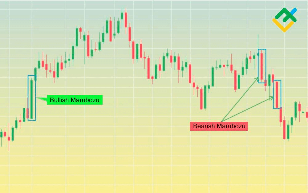 Nazwa Marubozo pochodzi od japońskiego słowa oznaczającego "krótko przycięty", co wskazuje na świecę bez cienia. Charakteryzującą cechą Marubozo na wykresie jest brak górnych lub dolnych cieni, co oznacza, że wykres nie wychodzi poza zakres cenowy dnia otwarcia. Sprawdź ✅ ten wykres świec poniżej 👇