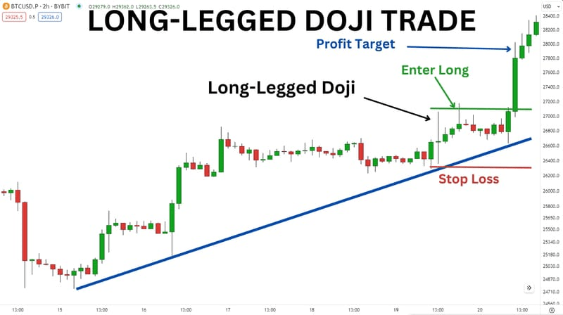 Wzór świecy Long-Legged Doji to narzędzie, które jest niezastąpione w handlu, mające implikacje dla traderów. Ten wzór sugeruje, że równowaga między popytem a podażą często wiąże się z potencjalnymi zmianami w sentymencie rynkowym. Traderzy postrzegają długonogą doji jako wskazanie niepewności na rynku akcji. Sprawdź ✅ ten wykres świec poniżej 👇