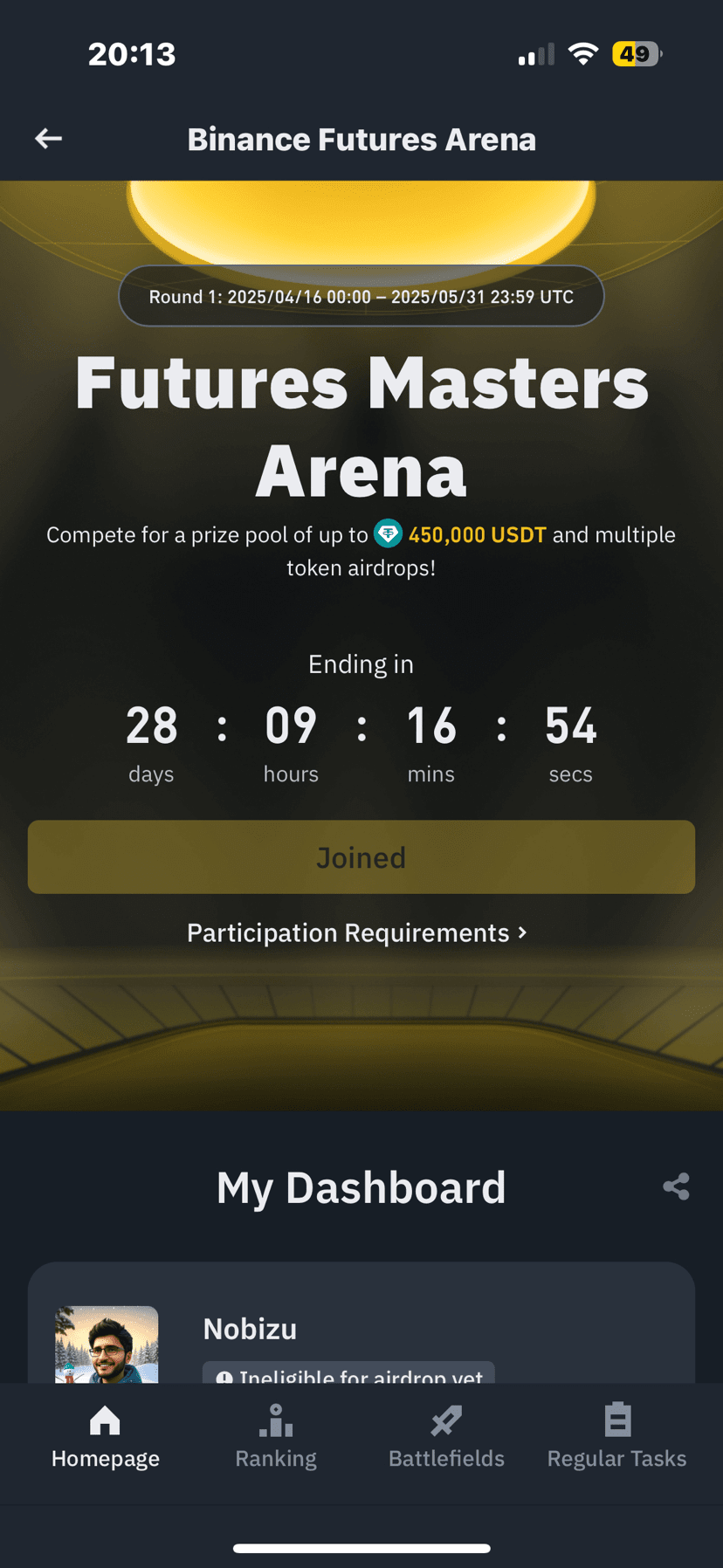 Dołącz do Areny: Kliknij przycisk „Dołącz” na pulpicie Areny Futures Binance.