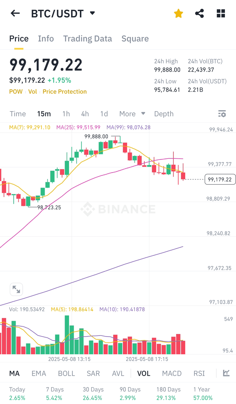 Bitcoin ($BTC ) niedawno dotknął poziomu $99.9K, ale nie mógł utrzymać tej pozycji, co doprowadziło do znaczącego odwrócenia. Obecne niższe ramy czasowe wskazują na słabość i wczesne oznaki dystrybucji, a momentum maleje, gdy sprzedawcy zyskują kontrolę blisko tego psychologicznego oporu.