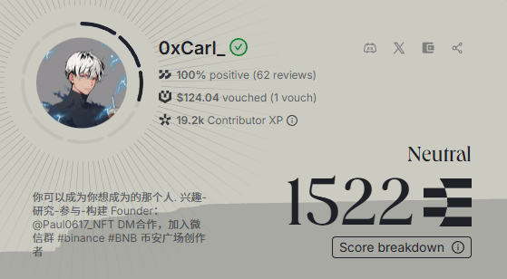 Ostatnio dzięki Ethos(@ethos_network) od diyaaa (@0xDiyaaa) mój wynik wiarygodności wynosi 1522 punkty. Utknąłem na tym poziomie. Wynik w przedziale 1200-1600 łatwo osiągnąć, komentując. Ostatnio jestem trochę zajęty. Po osiągnięciu 1600 będę wzajemnie się zabezpieczał z przyjaciółmi. Bez wzajemnego zabezpieczenia powinien to być duży punkt zwrotny i trudno będzie o duży wzrost. Uważam, że platforma nie jest wystarczająco dopracowana pod względem rozgrywki i uczciwości. Na razie będę codziennie wykonywał zadania. Później, gdy znajdę czas, ruszę do przodu i pomogę nowym członkom grupy zwiększyć ich wynik poprzez interakcję.
