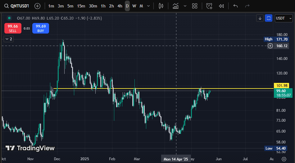 QNT testuje kluczowy poziom oporu na $101.98