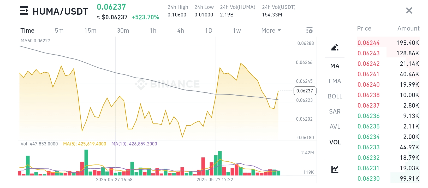 2. Otwórz wykres HUMA/USDT