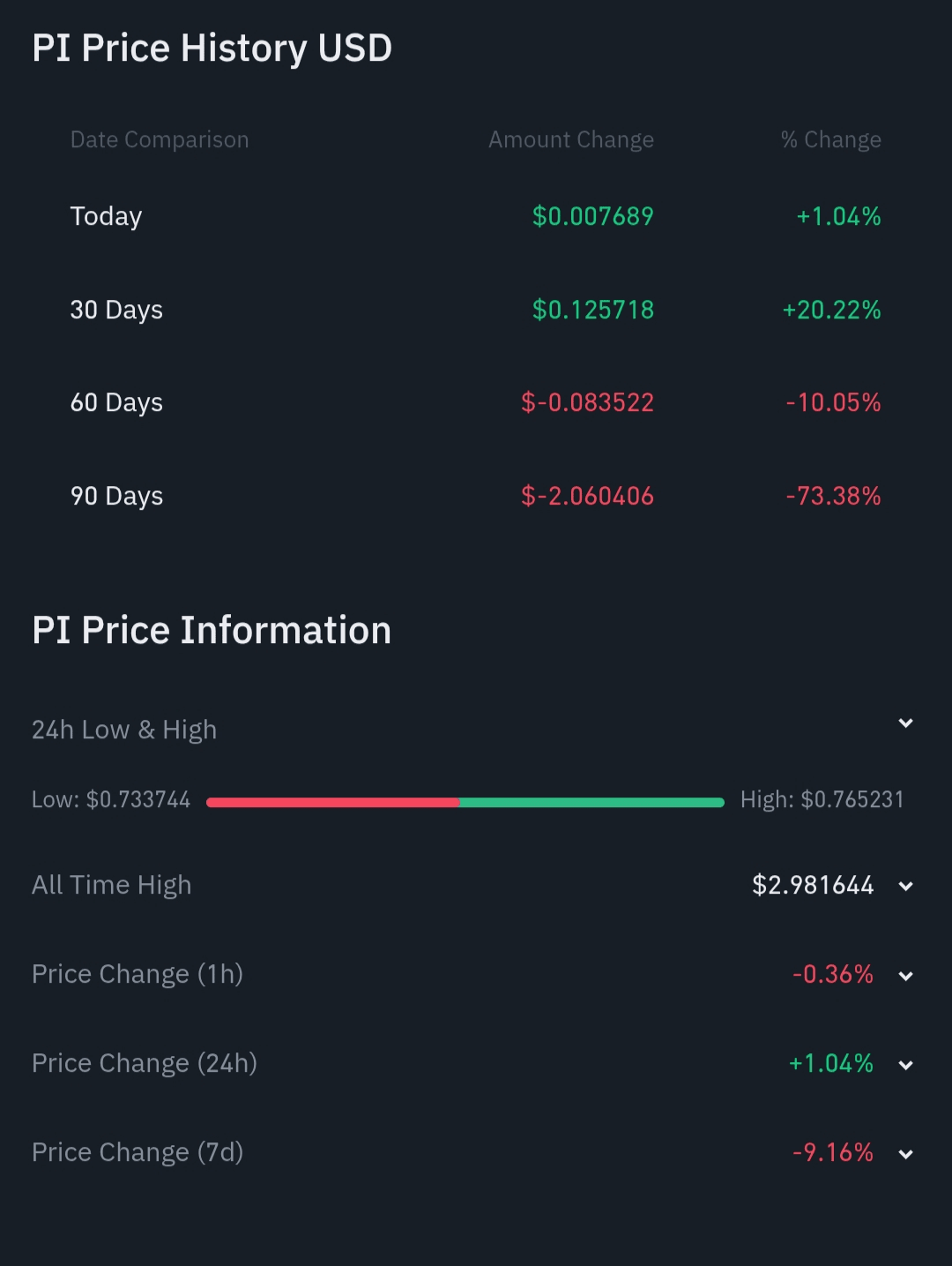 Aktualna cena Pi wynosi $0.747603 za (PI / USD) z obecną kapitalizacją rynkową wynoszącą $5.42B USD. 24-godzinna wolumen handlowy wynosi $101.98M USD. Cena PI do USD jest aktualizowana w czasie rzeczywistym. Pi wzrosło o +1.04% w ciągu ostatnich 24 godzin przy cyrkulującej podaży wynoszącej 7.25B.#pi #PiCoreTeam #PiNetworkMainnet