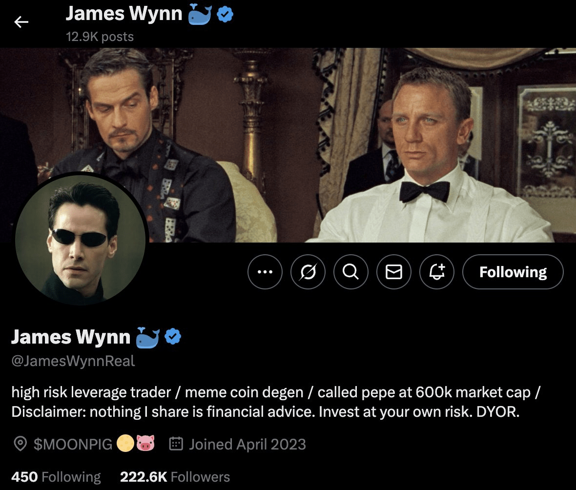 James Wynn to pseudonimowy wieloryb kryptowalutowy znany z ogromnych, wysoko lewarowanych transakcji na platformach takich jak Hyperliquid.