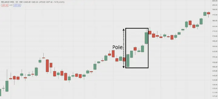 Kij flagi byka na dziennym interwale czasowym RELIANCE