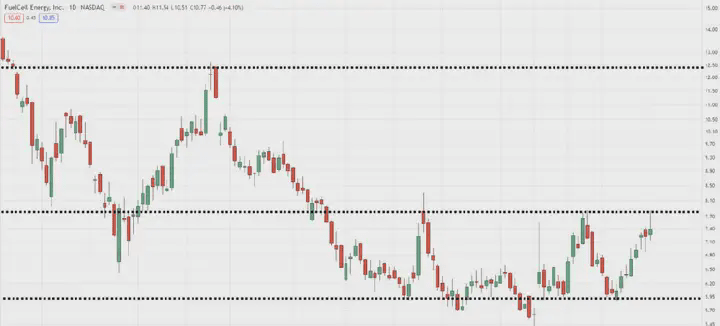 Poziomy wsparcia i oporu na dziennym interwale czasowym FCEL