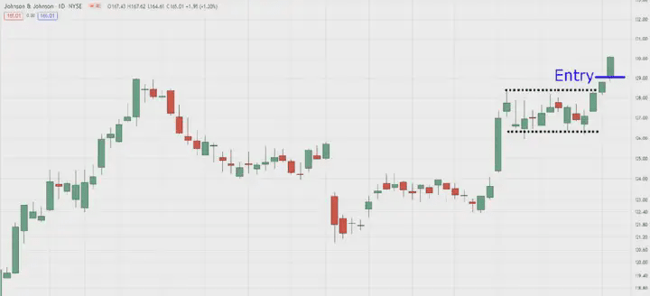 Wyzwalacz wejścia w formacji flagi byka na dziennym interwale czasowym JNJ