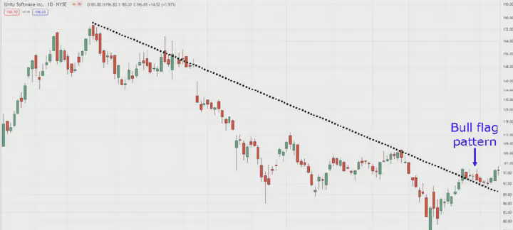 Po drugie, poczekaj, aż cena uformuje flagę byka, jak pokazano na poniższym rysunku.