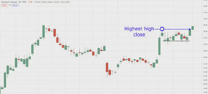 Najwyższa cena zamknięcia dziennego interwału czasowego JNJ