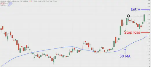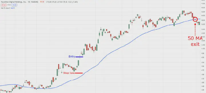 Trailing stop loss 50 MA wyjście dziennego interwału czasowego MARA