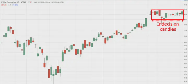 Niezdecydowane świece na dziennym interwale czasowym NVDA