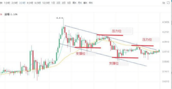 Wykres dzienny H (HT), wykres K opiera się na linii jakościowej, tworząc ważną formację techniczną w czasie wzrostów. W tym czasie wykres K wielokrotnie dostosowywał się, a po napotkaniu wsparcia linii jakościowej odbijał się do góry, traderzy mogą wejść i kupić lub zwiększyć pozycję. Punkt zakupu można wybrać w momencie przełamania linii ilościowej w górę.