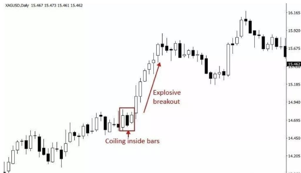 1. Owijanie formy inside bar zazwyczaj wskazuje na poważne wybicie cenowe, ponieważ rynek gromadził energię podczas owijania się, ta energia prowadzi do silnych wybitych.