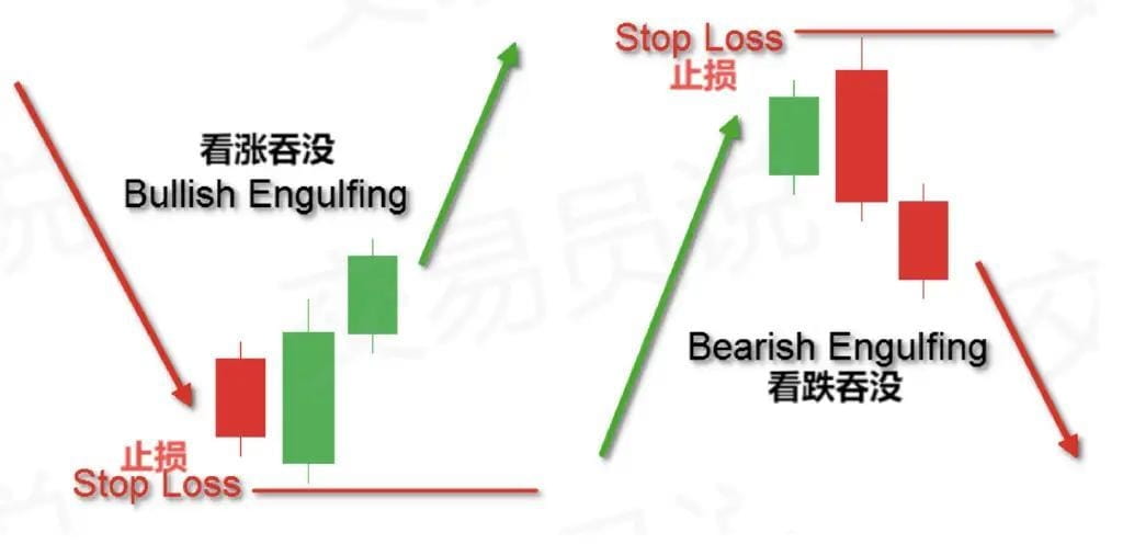 Powyższy wykres ilustruje, jak należy ustawić stop-loss podczas handlu formacjami Byczego i Niedźwiedziego Pochłonięcia. Jeśli cena nie poruszy się w oczekiwanym kierunku i uruchomi stop-loss, potwierdzi to błędność Twojej hipotezy handlowej, minimalizując jednocześnie straty kapitału.